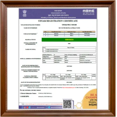 We are successfully registered under the Ministry of Micro, Small, and Medium Enterprises (MSME),